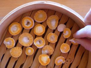 Recolectar los digüeñes y cortar en rodajas no tan delgadas (de unos 0,5 cm). Deshidratar suspendidos sobre una combustión en un rack o vaporera, o en una deshidratadora.