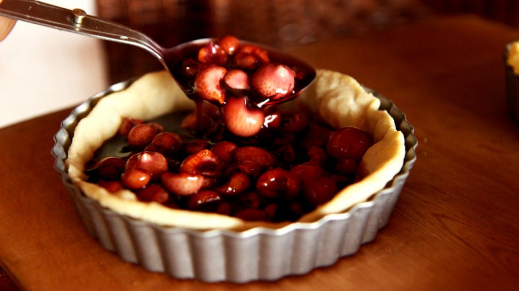 Precalentar el horno a 200°C. Para la masa, juntar todos los ingredientes y con los dedos mezclar hasta formar una masa. Uslerear y poner la masa en un molde enmatequillado para tartas. Refrigerar. (También resulta bien refrigerando la masa antes de uslerear)
